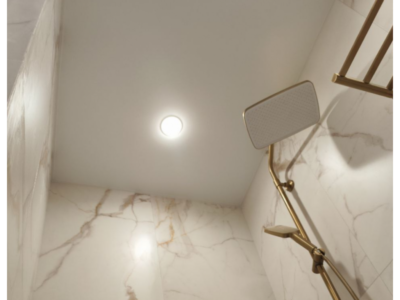 ПВХ пленка в ванной комнате — это практичное решение, особенно при сложных условиях эксплуатации. Среди основных плюсов — стойкость к высокой влажности и перепадам температур. Потолочное покрытие не впитывает влагу и не деформируется со временем, что делает его подходящим даже для плохо проветриваемых помещений. Благодаря антистатичной поверхности на потолке не скапливается пыль, а уход за ним не требует специальных средств. Установка натяжного потолка позволяет получить идеально ровную поверхность, скрыв все неровности базового перекрытия и элементы коммуникаций.